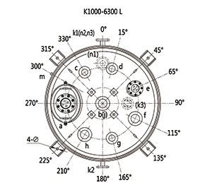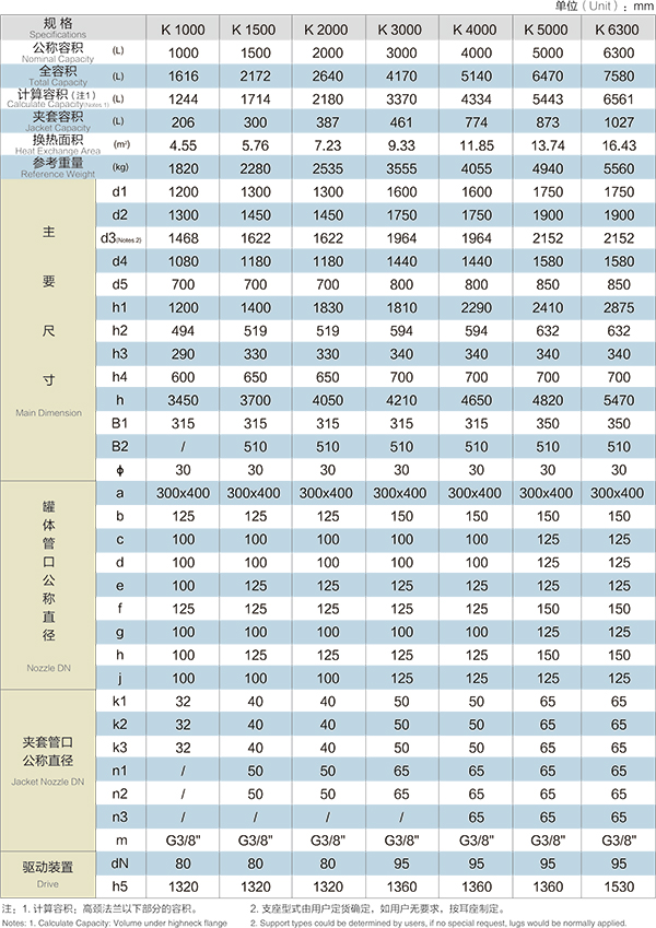 K1000L-K6300L開式搪玻璃反應釜(開式搪瓷反應釜)設計圖紙及參數如下所示: