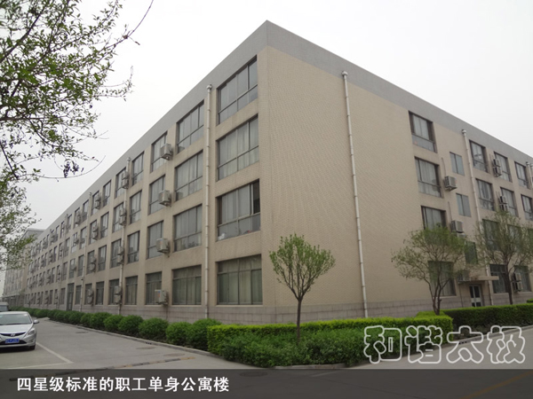 2008年,太極公司投資近8000萬元建成了職工公寓樓3座,戶外綠樹溪湖環繞,每戶面積170平米,統一配置60寸夏普電視等。所建成的職工單身公寓樓采用四星級標準,共176間房,人均戶面積50平米,統一配置電視、網絡、洗浴間、床柜、空調、暖氣、桌椅等。而且單身公寓內設有3000余平方米的生態園林和高檔游泳池,一年四季綠樹茂盛常春。