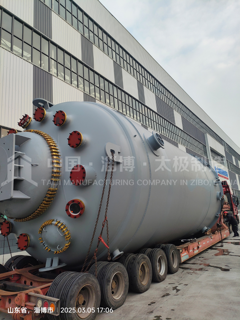 3 月 5 日,太極公司 8 萬升大型搪玻璃反應釜發貨現場一派繁忙,設備經嚴格質檢后整裝待發。該設備融合 36 項專利技術,采用自研高性能瓷釉,具備優異的耐腐蝕性與穩定性,將為客戶生產提供可靠保障。此次發貨彰顯了太極在大型搪玻璃設備制造領域的領先實力。
